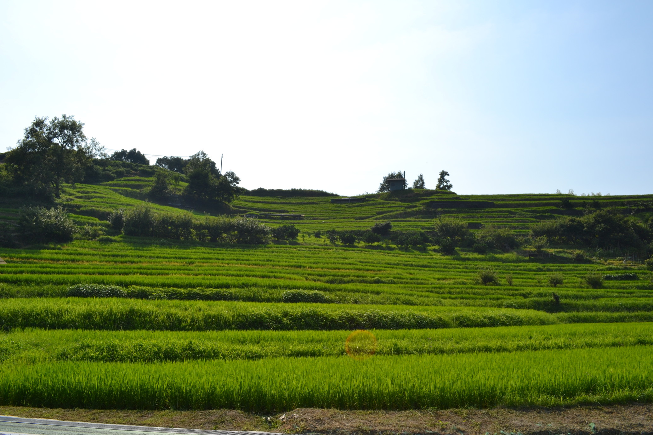 炎天下の中、棚田に向かって徒歩で向かいます。